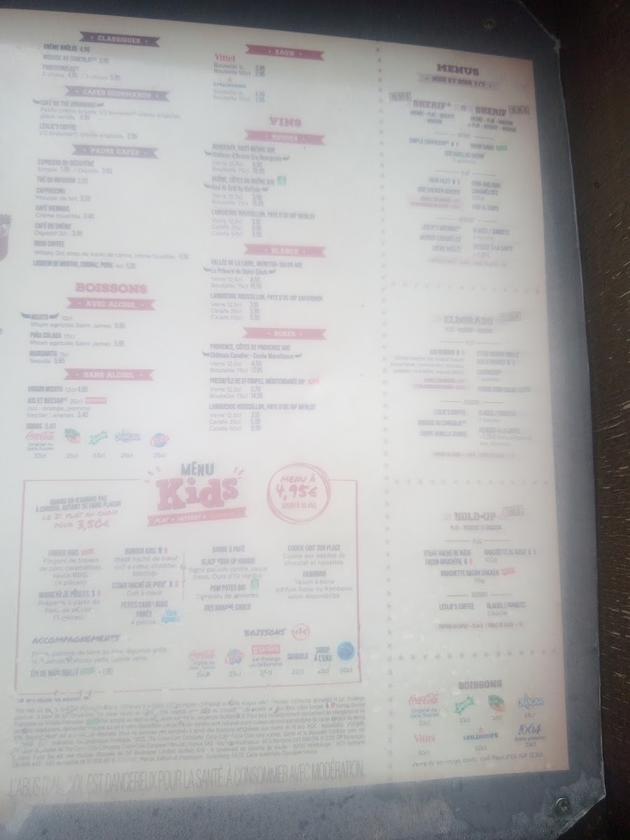 ● Crèmes glacées : chocolat, vanille, caramel felur de sel, café, banane, carnaval. ● Sorbets : fraise, citron, mangue.